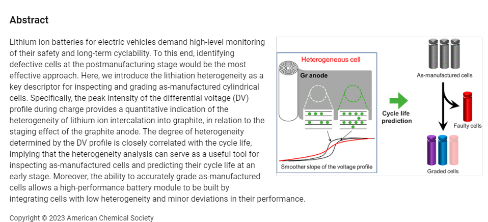 [ACS Energy-2023] Lifetime prediction of Lithium Ion batteries by using the heterogeneity of graphite anodes 본문