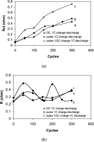 그런데, 저자가 이런 해석을한데는 (a)그림 때문입니다. c는 a,b보다 낮은 C-rate로 충방전을 반복했는데 Cycle에 따른 저항증가가 눈에띄게 증가했다는 것입니다.