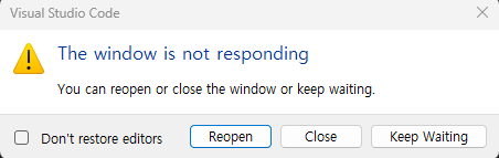 혹자들은 RTX 30,40시리즈와 Intel 13세대 호환이 갑자기 충돌하는 경우가 있다느니 하지만.. 이 PC를 쓴지가 2년이 다되가는데 갑자기 어젯밤까지 잘돌던 VSCode가 안된다고?? 그건말이 안되는데.. 라고 생각했습니다.