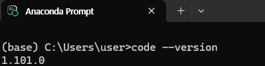 Anaconda Prompt나 Command Prompt창 들어가셔서 code--version을 입력해주면,