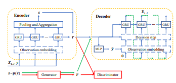 즉, 원본 데이터만 넣어 Reconstruction하는것이 아니라 결측치에 대한 정보도 Encoder에 녹여내는것이 목적이기때문에 GAN은 불필요한 학습을 하지 않도록 Pre-trained를 진행합니다. (GRU Based AE)
