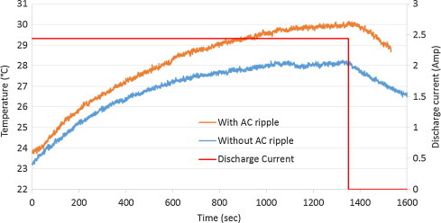 Anyway, 상기 그래프를 보시면 AC Ripple을 포함한 DC 방전 시 발열량에 의한 온도차이가 1400초만에 최대 3'C가까이도 나는것을 보실 수 있는데요