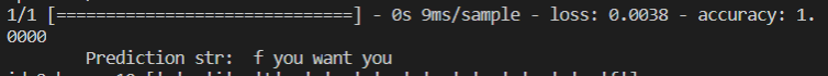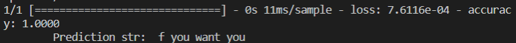 정확도 100%로 "if you want yo"까지를 input으로 주었을때 "f you want you"라고 예측하는 것을 확인할 수 있습니다.