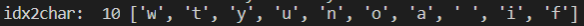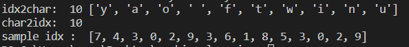 idx2char에서 나온 값들을 숫자로 매핑하여 sample idx처럼 숫자로 나열하는것을 의미합니다.