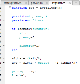 ② avg = avgfilter(xm) : avgfilter라는 function이 평균필터의 본체이고, 필터링한 값들을 불러오는것입니다.