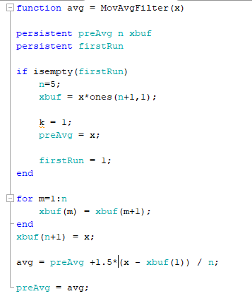 유일한 차이점은, avg = preAvg + 1.5*(x-xbuf(1))/n 으로, 1.5배만 해주었다는것 뿐입니다. (현재값에 포션을 좀더둠)