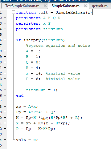코드분석이랄것도 없는게, 칼만필터 수식을 그대로 "타이핑" 해주었을 뿐입니다.