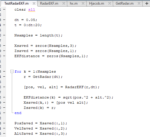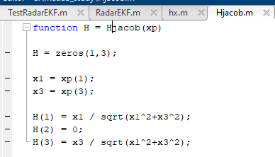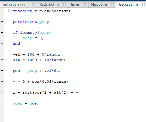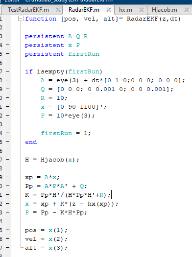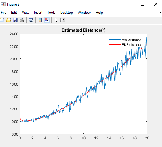 EKFdistance = sqrt(pos.^2 6 alt.^2)라는 함수를 통해 EKF로 얻어지는 R값을 저장합니다.