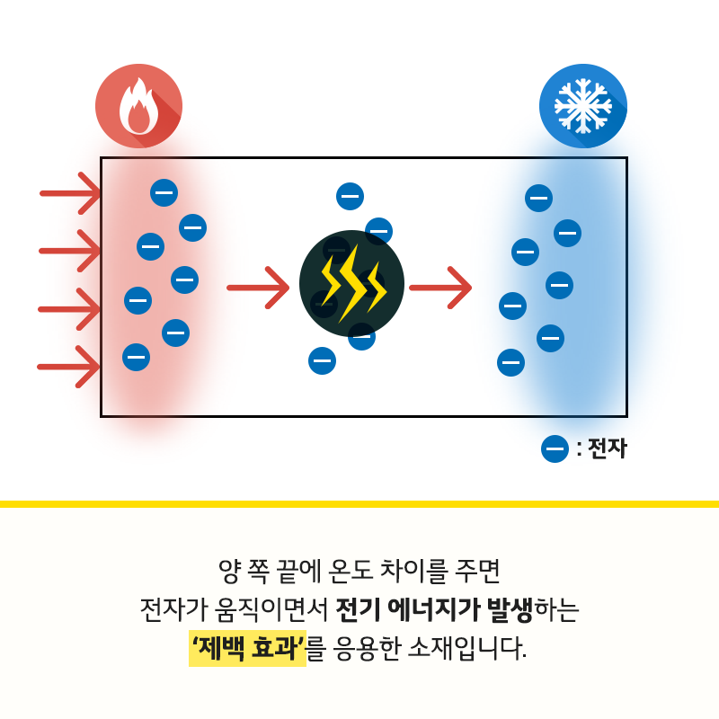 즉, 온도편차를 이용한 전류의 흐름 유도라고 볼 수 있습니다.
