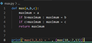 def max(a,b,c) 라는 함수를 만들어, 언제든 호출할 수 있도록 구현할수도 있습니다.